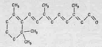 Те же самые слоистые структуры найдены и в других местах, где тоже важен свет, например в хлоропласте растений, где под действием света происходит фотосинтез. При большом увеличении мы обнаруживаем те же самые слои, но, конечно, вместо ретинена мы находим хлорофилл. Химическая форма ретинена показана на фиг. 36.6. Его боковая ветвь содержит серию альтернирующих двойных связей, характерную почти для всех сильно поглощающих органических веществ, подобных хлорофиллу, гемоглобину и т. д. Эти вещества человек не может изготовить в своих собственных клетках и должен получать их с пищей в виде специального вещества, в точности похожего на ретинен, за исключением водородной связи на правом конце. Называется это вещество витамином А. Если в пище его недостаточно, то запас ретинена в организме не пополняется и развивается то, что мы называем куриной слепотой, т. е. количества пигмента будет недостаточно для того, чтобы можно было видеть в сумерках. Известно также, почему такая серия двойных связей очень сильно поглощает свет. Я немного расскажу вам об этом. Альтернирующая серия двойных связей называется сопряженной двойной связью. Двойная связь означает, что там есть дополнительный электрон, который легко сдвинуть вправо или влево. Когда свет ударяет по этой молекуле, то электрон каждой двойной связи на один шаг сдвигается. В результате сдвинутся электроны во всей цепи, подобно тому, как упадут при толчке поставленные друг за другом костяшки домино, и хотя каждый из них проходит очень небольшое расстояние (мы считаем, что в отдельном атоме электрон может проходить только очень маленькое расстояние), в целом получается такой же эффект, как будто электрон с одного конца перескочил на другой! Это то же самое, как если бы один электрон прошел все расстояние взад и вперед, а в таком случае происходит значительно более сильное поглощение под действием электрического поля, чем если бы мы передвинули электрон только на расстояние, связанное с одним атомом. А поскольку двигать электрон взад и вперед не так уже трудно, то ретинен очень сильно поглощает свет; таков механизм, в основе которого лежит физика и химия. Date: 2015-05-19; view: 411; Нарушение авторских прав |