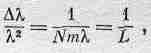 (38.5) где расстояние L показано на фиг. 38.3. Это — разность двух расстояний: расстояния, которое должна пройти волна (или частица), отразившись от нижней части решетки, и расстояния, которое нужно пройти, отразившись от верха решетки. Другими словами, волны, образующие дифракционный максимум,— это волны, приходящие от разных частей решетки. Первыми прибывают волны, вышедшие снизу — это начало цуга волн, а потом следуют дальнейшие части цуга, от средних частей решетки, пока не придут волны от верха: точка цуга, удаленная от его начала на расстояние L. Значит, чтобы получить в спектре резкую линию, отвечающую определенному импульсу [с неопределенностью, даваемой формулой (38.4)], для этого нужен цуг волн длиной L. Если цуг чересчур короток (короче L), то не вся решетка будет действовать. Волны, образующие спектр, будут отражаться при этом только от небольшого куска решетки, и решетка не будет хорошо работать — получится сильное размытие по углу. Чтобы его сузить, надо использовать всю ширину решетки так, чтобы хотя бы на одно мгновение весь цуг волн улегся одновременно на решетке и рассеялся ото всех ее частей. Потому-то длина цуга должна быть равна L; тогда только неопределенность в длине волны окажется меньше, чем указано формулой (38.5). Заметим, что