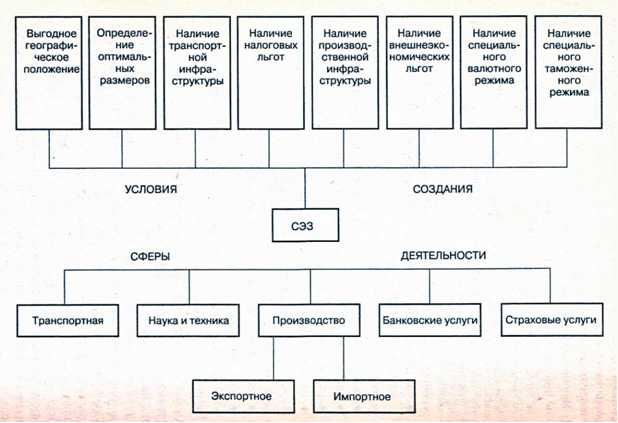 Рис. 4. Условия создания и сферы деятельности СЭЗ