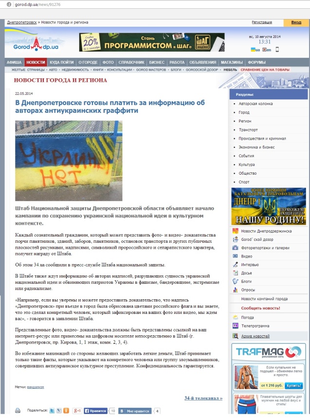 Вот, что об деятельности «SERBa» написала российская газета «Комсомольская правда»: - http://kp.ua/politics/453835-v-dnepropetrovske-platiat-za-poymku-avtorov-prorossyiskykh-nadpysei-na-zaborakh;
