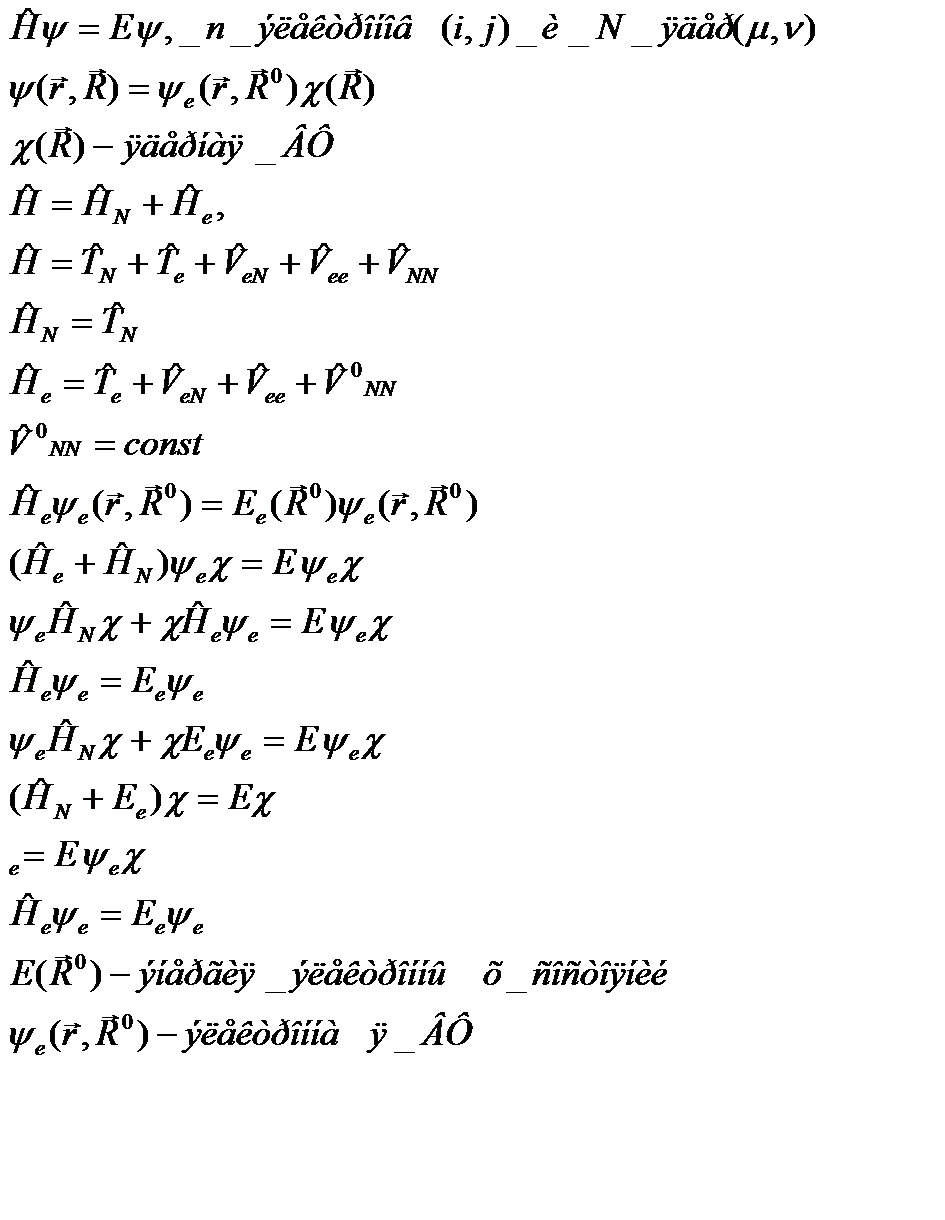 В приближении Борна-Оппенгеймера мы разделим ядерную и электронную части гамильтониана и будем рассматривать их отдельно.