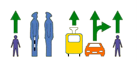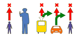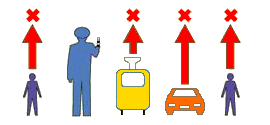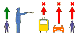 Правая рука регулировщика вытянута вперед и он стоит к Вам правым боком - запрещено движение всех транспортных средств. Пешеходам разрешено переходить проезжую часть только за спиной регулировщика.