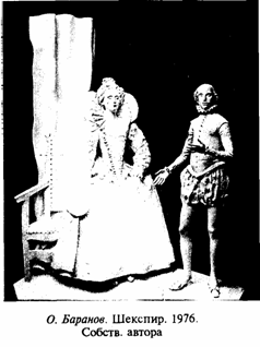 Один из последних памятников, установленных в Санкт-Петербурге, – Нобелю решен сугубо символически (1991, П. Шевченко, С. Алипов, арх. Жуйков). В целом монументальную скульптуру последних трех десятилетий объединяет ряд черт. Несомненно, что для нее характерно возрастание роли архитектуры в образном решении, в ней отчетливо тяготение к обобщению скульптурных форм, а также расширение круга использованных материалов (кроме традиционной бронзы, мрамора, металла–бетон, из техник– излюбленная закавказскими мастерами выколотка и т. д.). В скульптуре возникает «новая концепция пространства» – физическое пространство осмысливается как эстетическая категория, равнозначная скульптурному объему. Отсюда создание особого, «интерьерного поля», некоей сценической площадки (В. Вахрамеев «Семья Древиных», бронза, 1975; Д. Митлянский «Виктор Попков и его муза», 1973). И хотя на этом пути молодые скульпторы подчас грешат тенденциозностью, манерностью, нарочитой дегероизацией, нарушением – когда они обращаются к исторической теме – принципа историзма (например, О. Баранов «Пушкин», гипс, 1981; И. Блюмель «Н. Гоголь и А. Пушкин», 1981), сознание роли пространства в формировании художественного образа – новый этап в развитии скульптуры наших дней. Во всех видах изобразительного искусства наблюдается интерес к истории. Современные скульпторы широко используют приемы ведущих стилей прошлого в историческом портрете. Так, несомненно под впечатлением барокко – и даже несколько нарочито – исполнен В. Думаняном бюст Петра I (гипс). В лучших традициях русской пластики Коненкова, Голубкиной сделан В. Клыковым остропсихологический портрет И. Стравинского (бронза, 1981). Т. Соколова умело сочетает декоративность формы с психологической глубиной в постижейии внутреннего мира своих моделей (портрет С. Зеленской, кованая медь, 1964; портрет М. Цветаевой, бронза, 1970; «Амазонка», шамот, 1981, – последняя работа говорит о тонком понимании мастером греческой архаической пластики). В самостоятельном осознании принципов мировой современной пластики, и в частности пластики британского скульптора Генри Мура, рождалась работа А. Пологовой «В. Фаворский с дочерью» (гипс, 1967, ср. «Короля и королеву» Г. Мура). Пологова избирает вечные темы искусства – материнство, юность – и находит свое остроиндивидуальное решение («Мальчики», дерево, 1970). Нередко скульптор прибегает к раскраске («Художник Б. Кочейшвили», 1973). В современном портрете психологизация образа достигается чисто изобразительными средствами, без всякой «литературщины»: фактурой материала, цветом, использованием возможностей пространства внутри самой скульптуры, как это делают В. Вахрамеев, Т. Соколова, А. Пологова. В портрете начальника отдела метростроя Пологова использует контррельеф, как это практиковал Татлин в 20-е годы (1977, кованая медь). В тесной связи с архитектурой и архитектурно-декоративной скульптурой развивается декоративно-прикладное искусство и дизайн, та сфера прикладного искусства, которая связана исключительно с промышленностью (оформление станков, машин, приборов, предметов быта, витрин и пр.). Вместе с тем взаимоотношениям архитектуры с монументально-декоративным искусством еще очень далеко до гармонии. С середины 50-х годов в архитектуре началась «эра блочного строительства»: важнейшее место зан