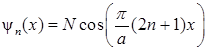 Квантование энергии в потенциальной яме конечной глубины A) решения B) решения C) D) условие появления первого связанного состояния E) условие появления первого связанного состояния F) первое связанное состояние возникает при любых значениях G) H) { Правильный ответ} = A, C, D {Сложность} = 3 {Учебник} = Давыдов А.С. Квантовая механика. Санкт-Петербург: 2011. 703 с. {Характеристика}= Курс} = 4 {Семестр} = 7 $$$0011 Волновая функция частицы в потенциальной яме с бесконечно высокими стенками и шириной