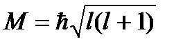 Водородоподобная система - система, состоящая из ядра (Ze) в кулоновском поле которого движется один электрон Потенциальная энергия взаимодействия Решение уравнения Шредингера дает Ψ- функции с тремя параметрами n, l, m, т.е. Ψ=Ψnlm (r, θ, φ), где n = 1,2,3…- главное квантовое число; l = 0,1,…,n-1 – орбиталь-ное квантовое число; m=0, · Момент импульса · Величина En определяется только n. Значит, при одном En (для n>1) возможны несколько состояний · Состояния с одинаковой En называют вырожденными. Кратность вырождения (N)- количество возможных состояний для данного энергетического уровня En · Для n=2 возможны 4 состояния: · Для n- го уровня В зависимости от значения l состояния символически обозначают: