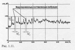 - если модулирующий процесс является случайным, а модулируемый - периодическим, а частота модулирующего случайного процесса на порядок или более ниже частоты модулируемого сигнала, то производится анализ по прямому спектру и модулируемые составляющие идентифицируются по ширине частотных составляющих, при этом нужно быть уверенным, что частота вращения была стабильна.