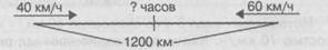Составьте по чертежам три обратные задачи. После рассмотрения обратных задач можно предложить учащимся вопросы: - Ближе к какому пункту произойдет встреча? Если в задаче даны обе скорости, то с помощью готового чертежа или при его выполнении полезно выяснить, почему пункт встречи находится ближе (или дальше) к одному из пунктов отправления, чем к другому. Если сначала известна только одна из скоростей, то данный вопрос полезно задать уже после решения задачи. - Какое расстояние будет между пешеходами через час после встречи, если они продолжали двигаться в тех же направлениях? Обратим внимание детей на то, что «скорость сближения» равна «скорости удаления». - Могли ли пешеходы встретиться в середине пути? - Кто из них придет в конечный пункт первым? Можно использовать целый ряд приемов с целью подготовки учащихся к решению более сложных задач. Например, можно изменить данные в условии задачи и предложить детям составить задачу по такому чертежу: