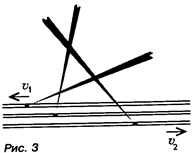 588. Рисунок (вид сверху) сделан с фотографии шлейфов дыма, тянущихся от трех паровозов, которые движутся по прямолинейному участку железнодорожного пути. Скорость первого паровоза v1 = 50 км/ч, второго v2 = 70 км/ч, а направления их движения указаны на рисунке стрелками. Какова скорость третьего паровоза? 596. Промежуток времени между двумя последовательным затмениями спутника Юпитера Ио в течение года изменяется от минимального значения 42 ч 28 мин 21 с до максимального 42 ч 28 мин 51 с. Пользуясь этими данными, определите скорость света, считая, что Земля движется вокруг Солнца по круговой орбите радиусом 150 млн. км. Радиус орбиты Юпитера гораздо больше радиуса орбиты Земли, а скорость движения Юпитера гораздо меньше скорости движения Земли. 603. Студент ездит в институт на метро по кольцевой линии. Станция, на которой он садится, и станция, на которой он выходит, находятся на противоположных концах диаметра кольца, так что студенту безразлично, в какую сторону ехать. Поэтому он садится в тот поезд, который подойдет раньше. Количества поездов, идущих по кольцу в разные стороны, одинаковы. Однако студент заметил, что он чаще ездит на поезде, идущем по часовой стрелке. Как это можно объяснить? 607. Самолет летит по замкнутому маршруту ABC. Пункты A, B и C лежат в вершинах правильного треугольника. В каком случае время, затраченное на перелет, будет меньше: если ветер дует в направлении вектора AB или в направлении вектора BA?
