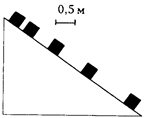 265. Мальчик, сидящий на санках, хочет подтянуть себя к стене с помощью веревки, прикрепленной к санкам и перекинутой через блоки. Каким должен быть для этого коэффициент трения мальчика о санки, если масса санок m, масса мальчика М, коэффициент трения полозьев санок о снег m? 368. Ракета массой m стартует под углом a к горизонту. Двигатели ракеты работают t секунд, создавая тягу F и обеспечивая прямолинейное движение ракеты. Пренебрегая изменением массы ракеты и сопротивлением воздуха, определите высоту, на которой прекращается работа двигателей. 378. Пассажиры самолета не испытывают неприятных ощущений, если только их вес в полете не увеличивается более чем вдвое. Какое максимальное ускорение в горизонтальном полете допускает это условие? 469. Рисунок сделан со стробоскопической фотографии кубика, движущегося вдоль наклонной плоскости. Промежутки времени между последовательными вспышками лампы равны 0,1 с. Определите коэффициент трения кубика о плоскость.