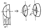 Ф1111. Равномерно заряженную полусферу разрезали на две части так, как показано на рисунке (по линии OO'), и эти части разнесли на большое расстояние. В какой точке напряженность электрического поля больше — в точке А' или в точке А" (см. рисунок)? С. Ф. Ким, А. И. Латынин