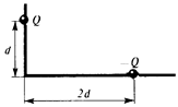 Ф1286. На непроводящий стержень, изогнутый под прямым углом, насажены две бусинки равной массы М, несущие заряды противоположных знаков Q и —Q. В начальный момент бусинки неподвижны и находятся на расстояниях d и 2d от вершины угла. Отпустим их. Где окажется «дальняя» бусинка в тот момент, когда «ближняя» доедет до вершины угла? Найдите скорости бусинок в тот момент, когда расстояние между ними составит d.