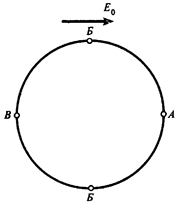 180. В однородное электрическое поле, напряженность которого равна Е, внесли металлический шар. Известно, что плотность поверхностных зарядов на «полюсе» шара в точке А равна s0. Определите плотность поверхностных зарядов в точке В, направление на которую из центра шара составляет угол a с направлением внешнего электрического поля. 187. Тонкая металлическая пластина площадью S залита слоем жидкого диэлектрика с плотностью r и диэлектрической проницаемостью e так, что толщина этого слоя много меньше линейных размеров пластины. Что произойдет с жидкостью, если пластине сообщить электрический заряд +Q? 189. Заряд q = 10-8 Кл равномерно распределен по дуге окружности радиусом R = 1 см с углом раствора: а) p радиан: б) 2p/3 радиан. Определите напряженность электрического поля в центре окружности. 203. В электронном генераторе использован триод, в котором расстояние между катодом и анодом равно 1 мм. Оцените максимальную частоту колебаний, которые можно получить, используя этот генератор, если анодное напряжение составляет 200 В. 231. Заряженный металлический шар радиусом R разрезан на две части по плоскости, отстоящей на расстояние h от центра. Найдите силу, с которой отталкиваются эти части. Полный заряд шара Q. 245. Имеется равномерно заряженная полусфера. Покажите, что плоскость, «закрывающая» эту полусферу, эквипотенциальна. Определите напряженность поля в точках этой плоскости. Плотность заряда полусферы s.
