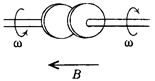 264. Две одинаковые круглые плоские металлические пластины, расположенные так, как показано на рисунке, вращают с угловой скоростью w в противоположные стороны в магнитном поле, перпендикулярном плоскостям пластин. Индукция магнитного поля равна В, расстояние между пластинами d. Оси пластин соединяют проводником. Найдите установившееся распределение плотности зарядов на пластинах в зависимости от расстояния r от центра.