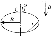 333. На непроводящем диске радиусом R закреплена по хорде проволока длиной l. Диск вращается с постоянной угловой скоростью w. Перпендикулярно к диску направлено магнитное поле с индукцией В. Найдите разность потенциалов между серединой и концом проволоки. 344. Заряд Q равномерно распределен по тонкому диэлектрическому кольцу, которое лежит на гладкой горизонтальной плоскости. Индукция магнитного поля, перпендикулярного плоскости кольца, меняется от 0 до В. Какую угловую скорость вращения приобретает при этом кольцо? Масса кольца m.