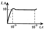 1016. В катушку может свободно втягиваться ферромагнитный сердечник массой M = 0,01 кг. Катушку подключили к источнику с напряжением U = 100 В, и через нее потек ток, показанный на графике на рисунке. Оцените начальную индуктивность катушки. Пренебрегая потерями, найдите скорость сердечника в момент t = 10-3 с.