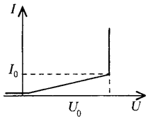642. На рисунке приведена идеализированная вольтамперная характеристика диода. Конденсатор емкостью C = 100 мкФ, заряженный до напряжения U = 5 В, подключается через диод к резистору сопротивлением R = 100 Ом. Какое количество теплоты выделится на резисторе при разрядке конденсатора?