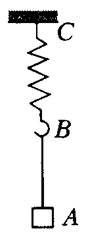519. Груз А подвешен к пружине ВС с помощью нити АВ. Какова должна быть амплитуда колебаний груза, чтобы эти колебания были гармоническими? Масса груза m = 0,1 кг, жесткость пружины k = 1600 Н/м.