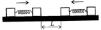 702. Две системы, каждая из которых состоит из двух одинаковых масс m, связанных пружинкой жесткостью k, движутся по гладкой горизонтальной поверхности навстречу друг другу с одинаковыми по величине скоростями v,. В некоторый момент времени расстояние между системами равно L. Определите время, через которое расстояние между теми же массами снова будет равно L. Столкновение систем считать абсолютно упругим.