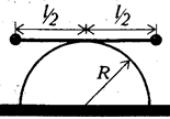 733. На полуцилиндре с радиусом основания R лежит гантелька длиной l. Найдите период малых колебаний гантельки.