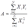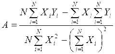 ΙΙ. Метод наименьших квадратов. В случае уравнения регрессии вида y = Ax + B коэффициенты A и B находятся по формулам: