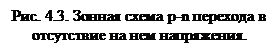 Преобладание потоков 1 и 2 над потоками 3 и 4 ведет к инжекции электронов в р -область и дырок в n -область, в результате чего в области контакта возникают избыточные концентрации дырок и электронов (на рис. 4.4, в заштрихованы). При увеличении прямого напряжения высота потенциального барьера