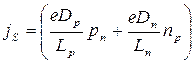 В р -области течет ток инжектированных электронов и ток дырок, следовательно: Аналогично в n -области течет ток инжектированных в нее дырок и ток электронов и выполняется равенство: Если рекомбинация в переходном слое пренебрежимо мала, то Полная плотность тока через переход с учетом этого условия записывается в виде Равенство (4.4) означает, что описание вольтамперной характеристики p-n перехода сводится к вычислению токов неосновных носителей на границе перехода. Это можно сделать, предположив, что уровень инжекции носителей мал, то есть время жизни τр и длину диффузии LР дырок в n -области и, соответственно, τn и Ln в р -области можно считать постоянными. Если токи через переход не слишком велики, то при вычислении Для тока диффузии дырок в плоскости – x1: