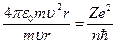 где е - заряд электрона, Zе - заряд ядра. Если (23) дополнить формулой (21) из первого постулата Бора, то можно определить радиус орбиты, скорость электрона на орбите, энергию электрона. Из (23) после сокращения на