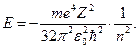 где m - масса электрона, 2. Излучение и поглощение энергии атомом происходит при переходе электрона с одной стационарной орбиты на другую. При этом величина кванта излучения или поглощения равна разности энергий соответствующих стационарных состояний: