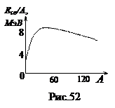 Строение атомных ядер. Энергия связи нуклонов. Атомные ядра состоят из протонов и нейтронов, которые называются нуклонами. Заряд протона qp = 1,6 · 10-19 Кл, масса mp =1836 me, где me – масса электрона; заряд нейтрона qn =0, его масса равна mn = mp + 2,5 me. В свободном состоянии нейтрон нестабилен. Он может распадаться на протон, электрон и особую частицу антинейтрино. Протон и нейрон – фермионы, т.е. их спины равны m s = ± ½. Свободные протоны и нейтроны подчиняются статистике Ферми-Дирака, к ним применим принцип Паули. Если число частиц в ядре четное, то оно имеет целочисленный спин и подчиняется статистике Бозе-Эйнштейна. В случае нечетного числа частиц, ядро обладает полуцелым спином и описывается статистикой Ферми-Дирака. Атомное ядро принято обозначать ZXA, где Х – символ элемента по таблице Менделеева; Z – количество протонов в ядре (зарядовое число, номер элемента в таблице Менделеева); А – суммарное число нуклонов (т.е. протонов и нейтронов) в ядре (массовое число). Таким образом, число нейтронов в ядре равно А-Z. Ядра, для которых Z одинаково, а число нейтронов различно, называются изотопами. Например, изотопы водорода: 1 Н 1[ Z =1, A - Z =0], 1 Н 2[ Z =1, A - Z =1] – тяжелый водород (дейтерий), 1 Н 3[ Z =1, A - Z =2] – сверхтяжелый водород (тритий). Изотопы одного элемента обладают одинаковыми химическими свойствами и не могут быть разделены химическим путем. Между нуклонами ядер существует связь. Энергия, которую нужно затратить, чтобы разделить ядро на невзаимодействующие нуклоны, называется энергией связи (Есв). Измерения показали, что масса ядра (mя) меньше суммы масс образующих его нуклонов на D m: D m = [ Z · mp + (A - Z) mn ] - mя > 0 (94) Эта величина называется дефектом массы. Сам факт наличия дефекта массы можно понять, вспомнив соотношение между массой и энергией, полученное в теории относительности E = mc 2. (95) Если уменьшается масса системы, то уменьшается (выделяется) энергия и наоборот, т.е. D E = c 2 ·D m. (96)