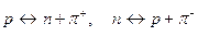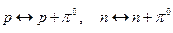 Таким образом, поле ядерных сил, в котором находится нуклон, можно рассматривать как облако виртуальных p -мезонов. Нуклоны взаимодействуют поглощая и испуская p -мезоны. Одна из возможных схем обмена нуклонов p -мезонами имеет вид: