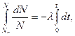 Последняя формула – математическая запись закона радиоактивного распада. Отметим, что N - число ядер, оставшихся по прошествии времени t. Положим в формуле (99) t=T, тогда