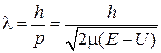Корпускулярно-волновая двойственность присуща также частицам вещества – Луи де Бройль, 1924 г. Из (1.8) получаем, что частице массой m, движущейся вдоль оси x в поле с потенциальной энергией U и с полной энергией Е, сопоставляется волна де Бройля, или волновая функция: