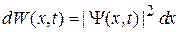 т. е. вероятность найти частицу в момент t в единичном интервале около точки x. Вероятность обнаружения частицы в интервале dx равна
