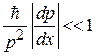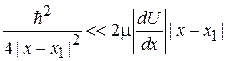– расстояние, на котором существенно изменяется потенциальная энергия. Согласно (3.57а) квазиклассическое приближение применимо вдали от точки поворота, когда длина волны де Бройля гораздо меньше расстояния, на котором существенно изменяется потенциальная энергия. Это соответствует большому импульсу и его малому изменению на протяжении указанного расстояния. Решение ВКБ неприменимо вблизи точки поворота при