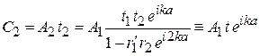 Решение на основе системы барьеров. Барьер рассматриваем как состоящий из двух ступенчатых барьеров с амплитудами прохождения и отражения для левого барьера (П.4.2)