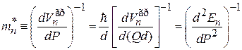 совпадающее с выражением для свободной частицы. Следовательно, для квазичастицы нет поля кристалла. В середине зоны Бриллюэна квазичастица описывается постоянной эффективной массой m*, импульсом