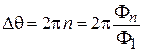 Учитываем, что при обращении движения набираемая фаза меняет знак, тогда можно считать, что электрон делает один оборот по кольцу. Из (1.34)