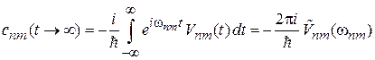 По истечении большого промежутка времени вероятность перехода системы с уровня энергии m на уровень n пропорциональна квадрату модуля фурье-образа возмущения на частоте перехода. Date: 2015-05-19; view: 575; Нарушение авторских прав |