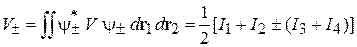 Учтена симметрия интегралов при замене В результате для состояний с координатными функциями и полным спином получаем