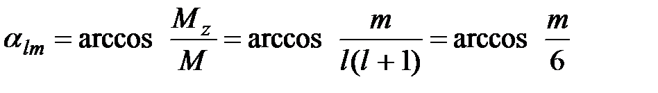 Значение угла Таким образом, в изотропном потенциальном поле состояние частицы характеризуется в общем случае тремя квантовыми числами: n – главное квантовое число, которое классифицирует значение полной энергии частицы En; l = 0, 1, 2, 3… – орбитальное квантовое число, которое определяет значение модуля углового момента