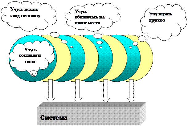12. «Число — контролер» Ученики получают карточки с примерами: 2-1= 3-1= 0+3= 9-9= 1+1= 7-7= 5-3= Решив данные примеры, они могут себя проконтролировать — сумма всех ответов равняется числу 10. Подобные упражнения содержат в себе большие возможности для развития у детей приемов самоконтроля; особенно являются продуктивными те из них, где ребенок имеет возможность сопоставлять учебные действия и их конечный результат с заданным образцом. 13. «Нарисуй по указанию»: 1. В правом нижнем углу нарисуй два маленьких красных кружка; 2. Слева от кружков нарисуй большой синий треугольник; 3. Посередине листа нарисуй две фигуры одинаковой формы; 4. Посмотри сколько кружков на листе и в левом верхнем углу нарисуй столько же красных квадратов 14. «Точно выполни указание»: 1. Положи карандаш на тетрадь; 2. Положи тетрадь на карандаш; 3. Положи карандаш так, чтобы он был между резинкой и тетрадью; 4. Положи карандаш так, чтобы он оказался одновременно под тетрадью и резинкой; 5. Положи резинку ближе к карандашу, чем к тетради; 6. Положи тетрадь слева от карандаша, но справа от резинки; 7. Положи карандаш справа от тетради и резинки.