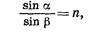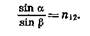 Это выражение называется законом преломления волн: падающий луч, преломленный луч в перпендикуляр к границе раздела двух сред, восставленный в точке падения луча, лежат в одной плоскости; отношение синуса угла падения к синусу угла преломления есть величина постоянная для двух данных сред.