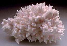 Кальцит. Андрее-Юльевский прииск, Южный Урал. Сталактитовые образования в гротах известняковых пещер растут при отложении углекислой извести из просачивающихся к пустотам насыщенных растворов. Кальцит осадочного происхождения образует огромные скопления в морских бассейнах. Они возникают из останков водорослей и животных с известковым скелетом. Первоначально такие массы бывают сложены арагонитом, который позднее переходит в кальцит. Кальцит довольно устойчив к выветриванию; часто замещается опалом и халцедоном, реже — гётитом, гематитом, гипсом, малахитом, доломитом и другими минералами.