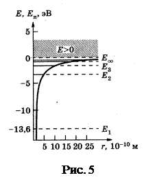 Решение этого уравнения выходит за рамки наших возможностей. По этой причине ограничимся описанием результатов этого решения. Отметим, прежде всего, что т.к. это пространственная задача, то решение можно представить в виде трех функций, каждая из которых зависит только от одной переменной – х, y или z. Каждая из них представляет собой дискретный набор решений вида (20), за который отвечает определенный набор целых чисел, которые называются квантовыми. Здесь проявляется главная особенность квантово-механических систем – дискретность физических величин, определяющих их состояние. Во-вторых, функции, удовлетворяющие требованиям однозначности, конечности и непрерывности, и, являющиеся решениями уравнения (23), существуют только в том случае, если собственные значения энергии электрона в атоме равны: