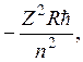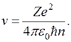 Следовательно E = Таким образом, энергия электрона в водородоподобном ионе равна по величине и противоположна по знаку его кинетической энергии. Используя полученную выше формулу для скорости электрона, придем к следующему выражению для энергии электрона в водородоподобном ионе: