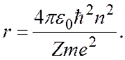Это значение называют б оровским радиусом. Используя это обозначение, формулу для радиуса n-й орбиты электрона в водородоподобном ионе можно записать как