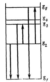 Рис. 18.7. Спектр энергий электрона в водородоподобном ионе. Стрелками условно обозначены переходы электрона с одной орбиты на другую