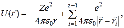 ■ Во всех атомах, кроме атома водорода, содержится более одного электрона. В таких атомах каждый электрон взаимодействует не только с ядром, но и с другими электронами. При этом потенциальная энергия электрона будет равна сумме энергии его взаимодействия с ядром и энергий взаимодействия с остальными Z — 1 электронами: