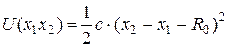 Рис. 22.7. Модель двухатомной молекулы Стационарное движение двух частиц вдоль проходящей через них оси х согласно представлениям квантовой механики будем описывать посредством функции ψ = ψ (x 1, x 2), где x 1и x 2 ~ координаты частиц. Эта функция является решением уравнения Шредингера