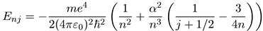 Как указывалось в предыдущем параграфе, наличие спина у электрона приводит к расщеплению энергий состояний с опреленным значением l (т. е. момента импульса, связанного с орбитальным движением электрона) за счет спин-орбитального взаимодействия. Его происхождение качествено может быть легко понято, если иметь в виду, что собственный магнитный момент электрона, связанный с его спином, взаимодействует с магнитным полем орбитального тока. Можно рассуждать по-иному: в системе координат электрона, движущегося в кулоновском поле ядра, возникает магнитное поле, с которым взаимодействует собственный магнитный момент электрона. Энергия такого взаимодействия зависит от ориентации магнитного момента относительно направления поля, т. е. от его проекции на это направление. А так как проекция магнитного момента (вместе с проекцией спина) может принимать два значения, то для любого l мы получаем расщепление на два состояния, соответствующие двум возможным значениям квантового числа полного момента j = l±1/2. Исключение составляет лишь состояние с l = 0, для которого j принимает только одно значение: j = 1/2. Таким образом, наличие спина у электрона приводит к возникновению поправки к полной энергии атома водорода (см. (5.44)), зависящей от квантового числа j. Эта поправка невелика, она такого же порядка, что и релятивистская поправка. Последовательный квантовомеханический расчет, учитывающий оба типа поправок, дает: